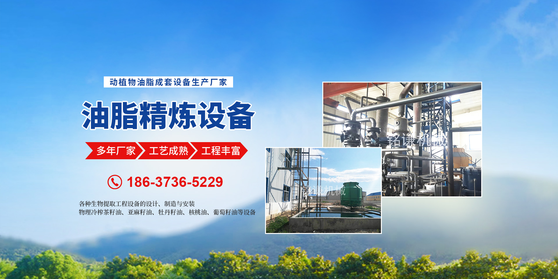 河南省銘謙機械設備有限公司,是集開發、科研、生產、安裝、調試、售后服務為一體的現代化企業。  我公司擁有優良的技術設備,為動物油熬煉設備,無公害化處理設備,核桃油設備,茶籽油設備,牡丹籽油設備,牡丹籽油機械產品的品質提供了有力的技術和質量保證。  ★油料預處理、榨油成套設備的設計、制造與安裝。  ★油料浸出設備的設計、制造與安裝。  ★半連續,連續(化學)物理精煉設備的設計、制造與安裝。  ★茶籽油,牡丹籽油,核桃油,亞麻籽油,葡萄籽油的設備的設計、制造與安裝。  ★各種生物提取工程設備的設計、制造與安裝。  ★各種(豬、牛、羊、雞、鴨等)油廠熬制、精煉設備的設計、制造與安裝。  ★濃香型花生油、菜籽油、茶籽油、亞麻籽油、葵花籽油等設備的設計、制造與安裝。  ★物理冷榨茶籽油、亞麻籽油、牡丹籽油、核桃油、葡萄籽油等設備的設計、制造與安裝。  ★豆類清理設備、雜糧脫皮制粉設備、小麥制粉設備、大米加工流水線、小米加工流水線等設備的設計、制造與安裝。  ★各種過濾設備,化工設備的設計與制造。  我們以工藝和信譽求發展,以質量和設備求生存。堅持“質量為上,用戶為上”的宗旨為客戶提供完善的技術咨詢和售后服務。始終把產品質量作為企業生存、發展的主要要務,竭誠歡迎新老用戶光臨指導。